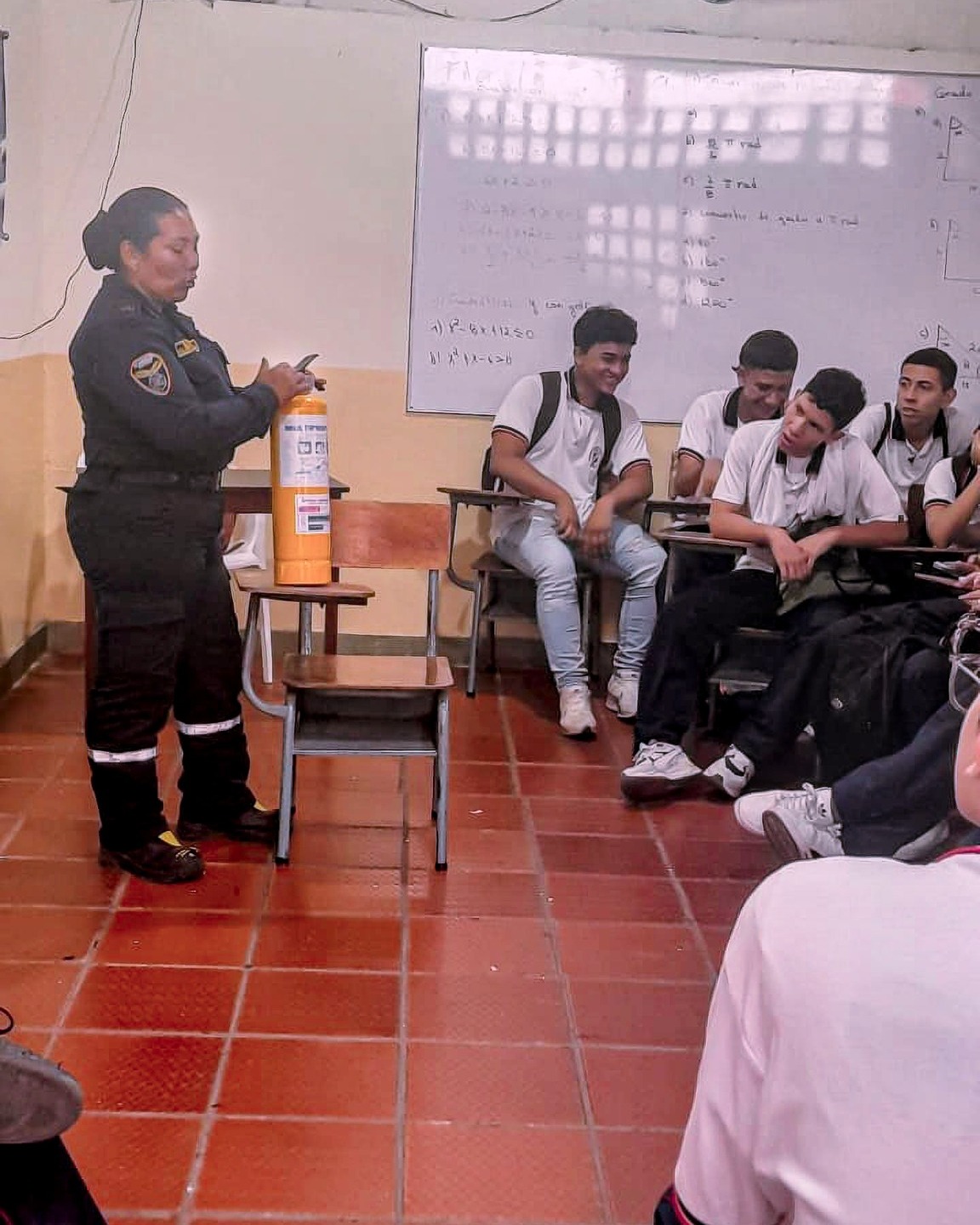 Nuestros estudiantes recibieron una valiosa capacitación sobre cómo actuar de manera segura y efectiva en situaciones de emergencia, incluyendo el uso correcto de extintores en caso de incendios..